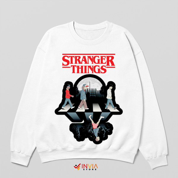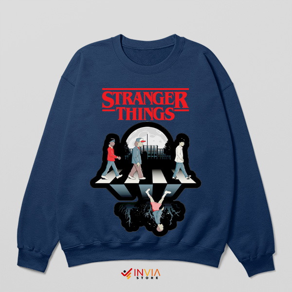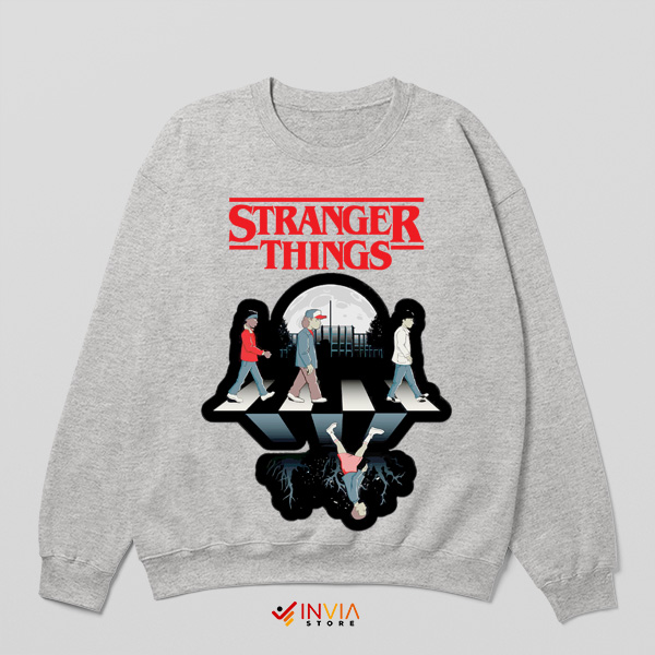 This unique sweatshirt merges the classic Abbey Road album cover with the eerie, supernatural world of Stranger Things. Featuring a bold, retro design, it’s perfect for fans of both The Beatles and the thrilling 80s-inspired sci-fi series. Ideal for cozying up during binge-watching sessions or adding a pop culture twist to your everyday look.